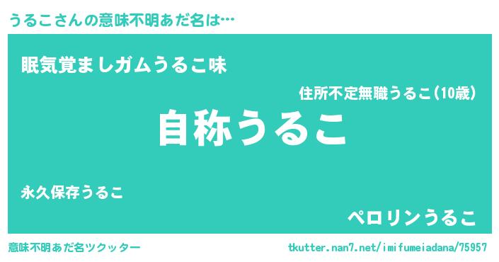 | 男性向けラノベタイトル風あだ名 | 『Re:うるこから始める異世界生活』 |
