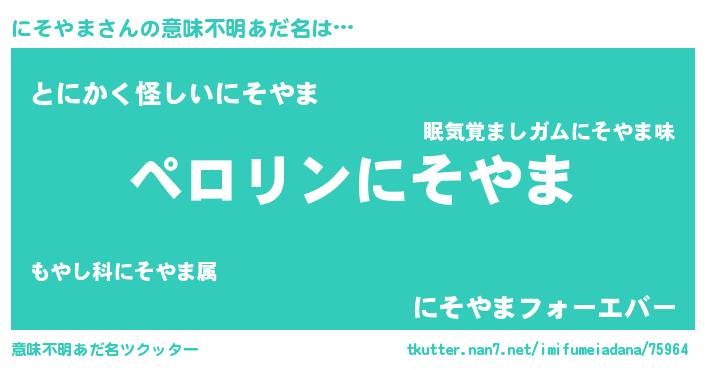 | 男性向けラノベタイトル風あだ名 | 『ニソヤマアートオンライン』 |
