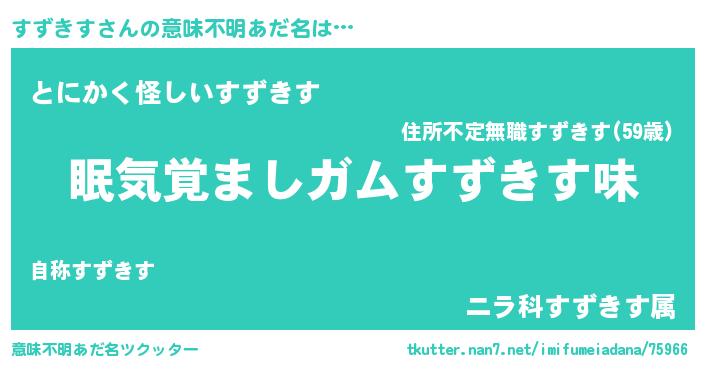| ヘコむあだ名 | 『すずを』『すずきす(笑)』 |