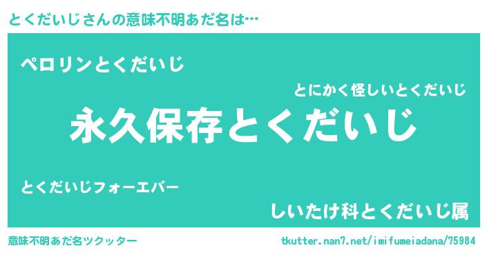 | 胡散臭い通販商品みたいなあだ名 | 『来世でも幸せになれる健康食品…その名も「とくだいじ」』 |