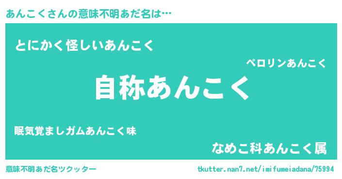 | ヒーロー風カッコイイあだ名 | 『超時空戦士アンコク』『天弓騎士アン』 |
