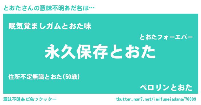| ヒーロー風カッコイイあだ名 | 『ネオトオタ』『慈愛の使者とおた』 |