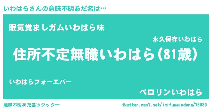 | 男性向けラノベタイトル風あだ名 | 『この素晴らしい世界にいわはらを!』 |