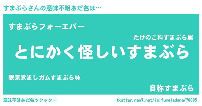 | ヒーロー風カッコイイあだ名 | 『魔戒騎士スマ』『ウルトラすまぶらマン』 |