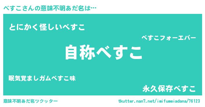 | 男性向けラノベタイトル風あだ名 | 『Re:べすこから始める異世界生活』 |