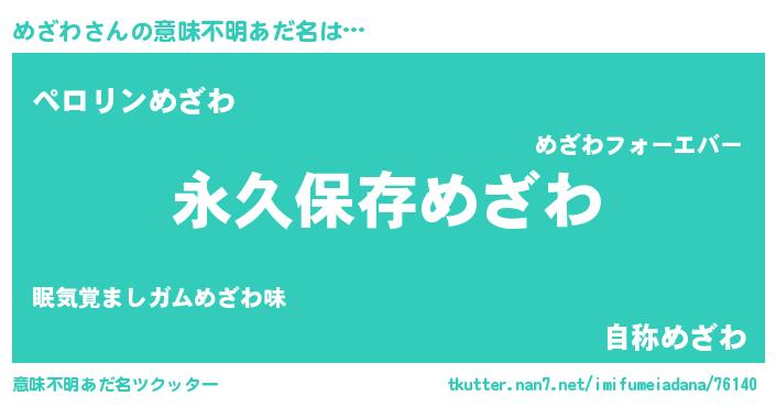 | 男性向けラノベタイトル風あだ名 | 『めざわという概念が存在しない退屈な世界 』 |