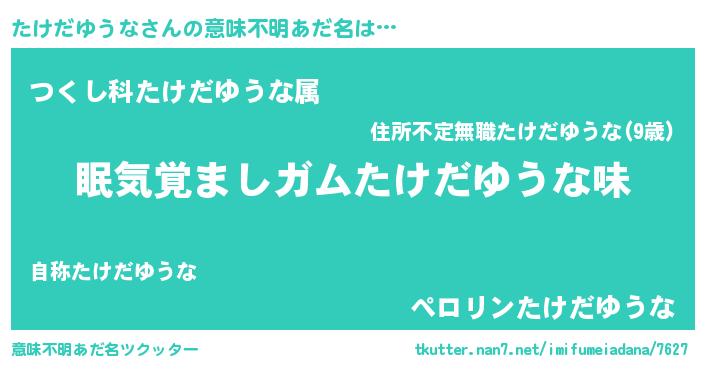 | ヘコむあだ名 | 『たけにー』『たけだゆうな(爆)』 |