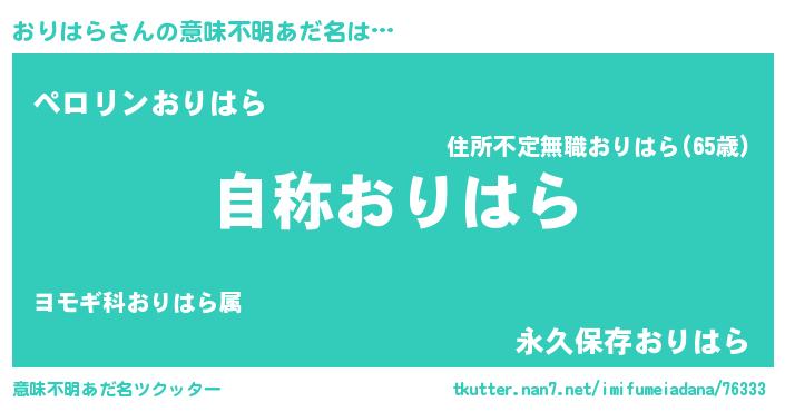 | 男性向けラノベタイトル風あだ名 | 『緋弾のオリハラ』『おりはらの憂鬱』 |