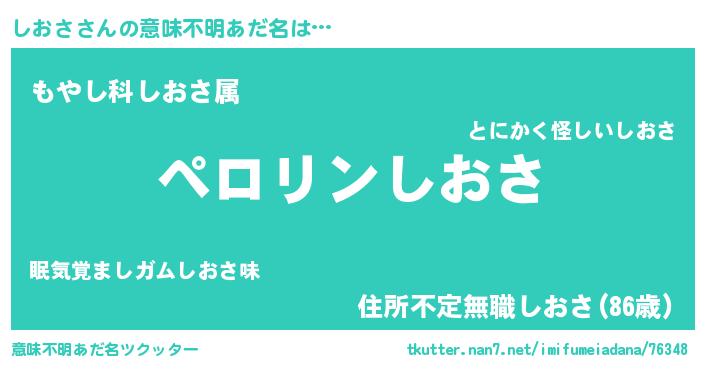 | 胡散臭い通販商品みたいなあだ名 | 『必ず成功する霊験あらたかなお札…その名も「しおさ」』 |