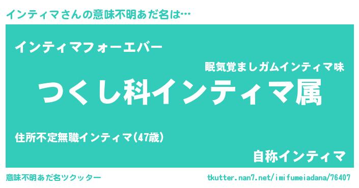 | 女子向けラノベタイトル風あだ名 | 『インティマの玉の輿計画!』 |