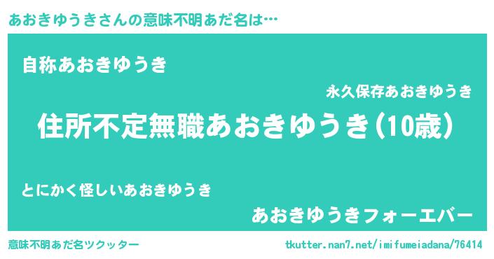 | ヘコむあだ名 | 『酢こんぶ』『あおきゆうき(震え声)』 |