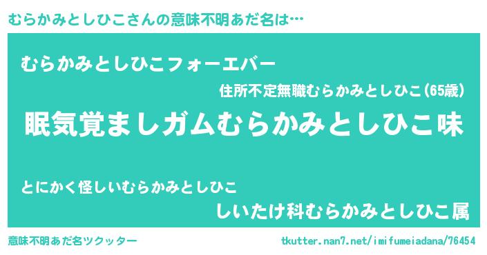 | 男性向けラノベタイトル風あだ名 | 『ノーゲーム・ノームラカミトシヒコ』 |