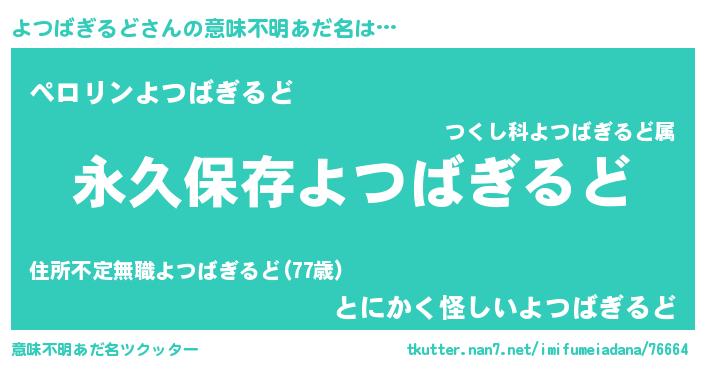 | 胡散臭い通販商品みたいなあだ名 | 『絶対に幸福をもたらす健康食品…その名も「よつばぎるど」』 |