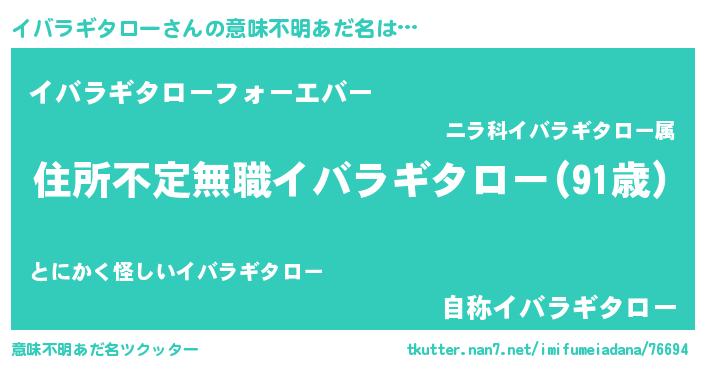 | 男性向けラノベタイトル風あだ名 | 『この素晴らしい世界にイバラギタローを!』 |