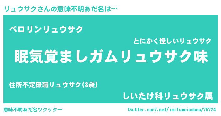 | 男性向けラノベタイトル風あだ名 | 『おまえをオタクにしてやるから、俺をリュウサクにしてくれ! 』 |