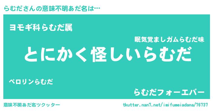 | 胡散臭い通販商品みたいなあだ名 | 『伝統あるサプリメント…その名も「らむだ」』 |