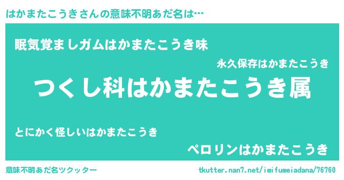 | 肩書あだ名 | 『はかまたこうき中佐』 |