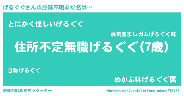 | 男性向けラノベタイトル風あだ名 | 『この素晴らしい世界にげるぐぐを!』 |