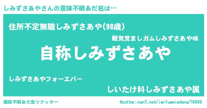 | 男性向けラノベタイトル風あだ名 | 『Re:しみずさあやから始める異世界生活』 |