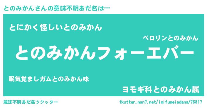 | 欧米人風あだ名 | 『とのみかんクリステル』 |