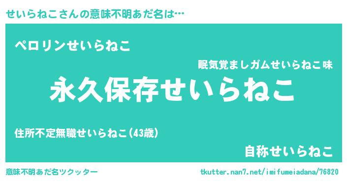 | 胡散臭い通販商品みたいなあだ名 | 『前代未聞の水素水…その名も「せいらねこ」』 |