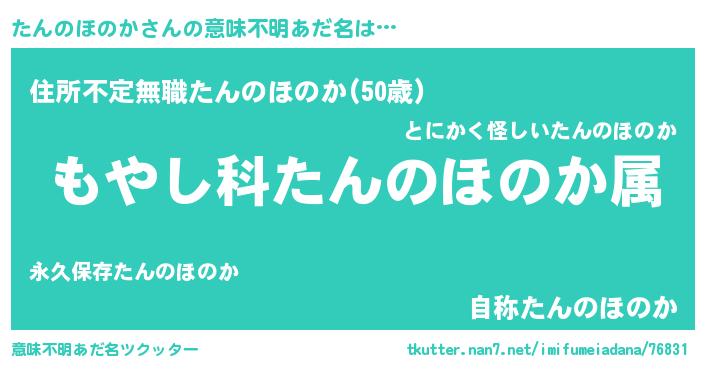 | 男性向けラノベタイトル風あだ名 | 『転生したらたんのほのかだった件』 |