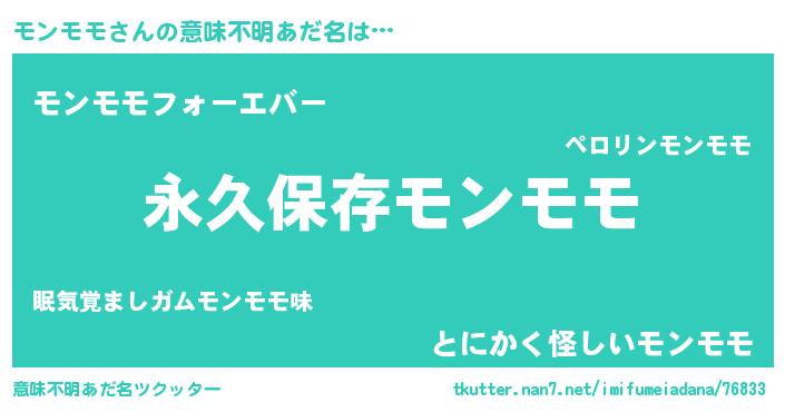 | 男性向けラノベタイトル風あだ名 | 『モンモモという概念が存在しない退屈な世界 』 |
