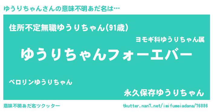 | 欧米人風あだ名 | 『ゆうりちゃん・ステッグマイヤー』 |