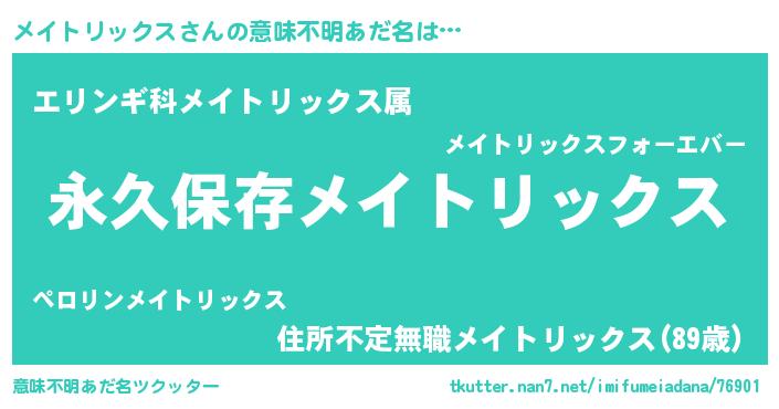 | ヒーロー風カッコイイあだ名 | 『ネオメイトリックス』『仮面メイダー』 |