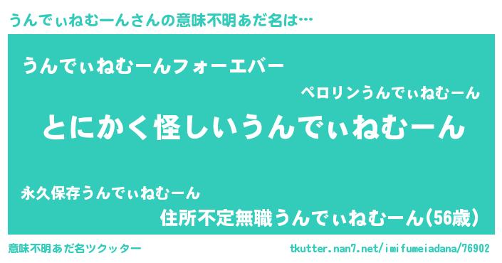 女子向けラノベタイトル風あだ名 | 『うんでぃねむーんは平凡を望む』 |