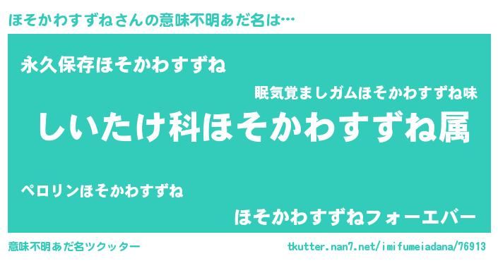 | 胡散臭い通販商品みたいなあだ名 | 『絶対に幸福をもたらす健康食品…その名も「ほそかわすずね」』 |