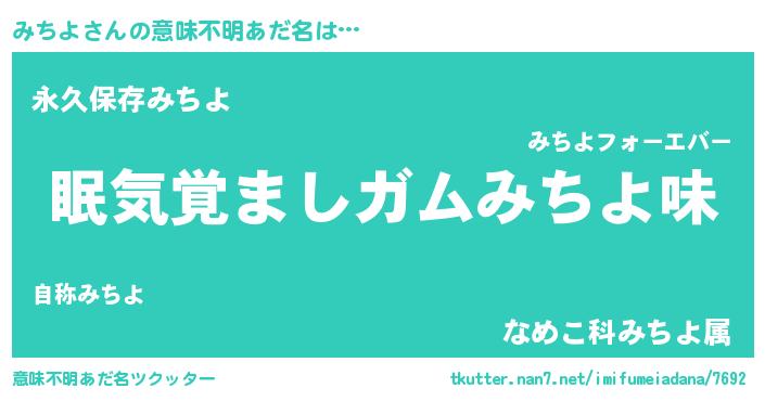 | ヒーロー風カッコイイあだ名 | 『正義の使者みちよ』『ネオミチヨ』 |