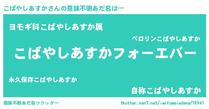 | 欧米人風あだ名 | 『こばやしあすかクリステル』 |