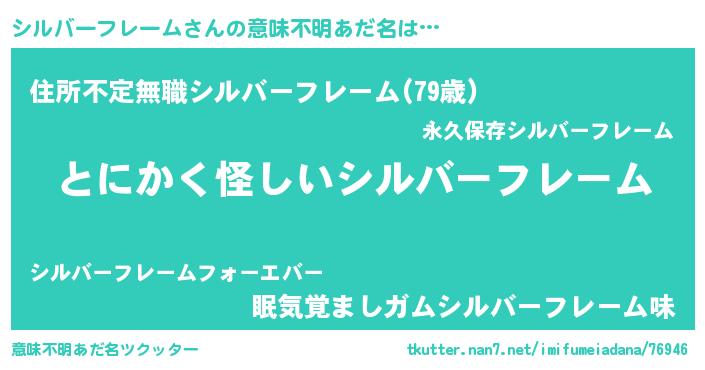 | 女子向けラノベタイトル風あだ名 | 『シルバーフレーム様がみてる』 |