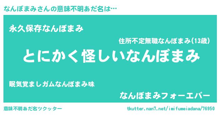 | ヒーロー風カッコイイあだ名 | 『魔戒騎士ナン』『ネオナンボマミ』 |