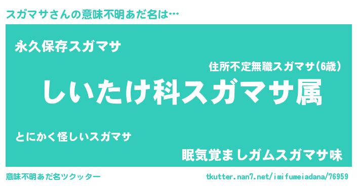 | 胡散臭い通販商品みたいなあだ名 | 『絶対に幸福をもたらす水素水…その名も「スガマサ」』 |
