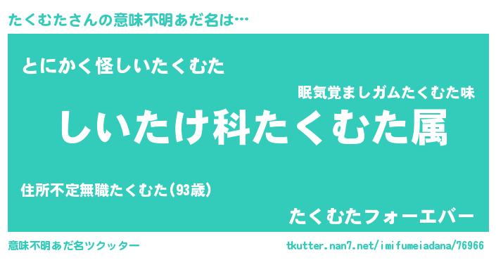 | ヒーロー風カッコイイあだ名 | 『黄金騎士タク』『ウルトラたくむたマン』 |