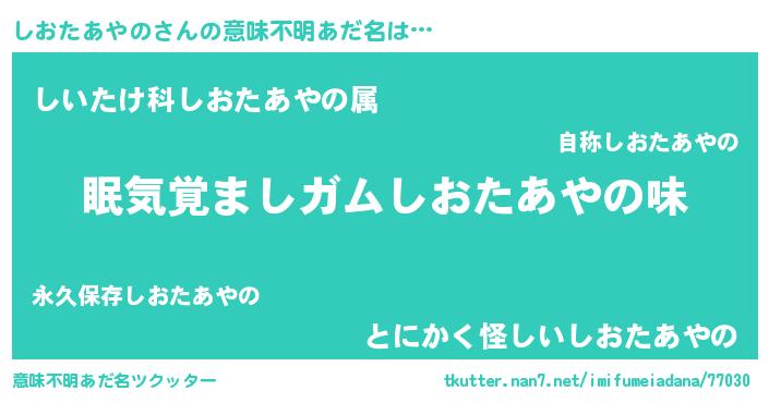 | ヘコむあだ名 | 『しおっぺ』『しおたあやの(笑)』 |