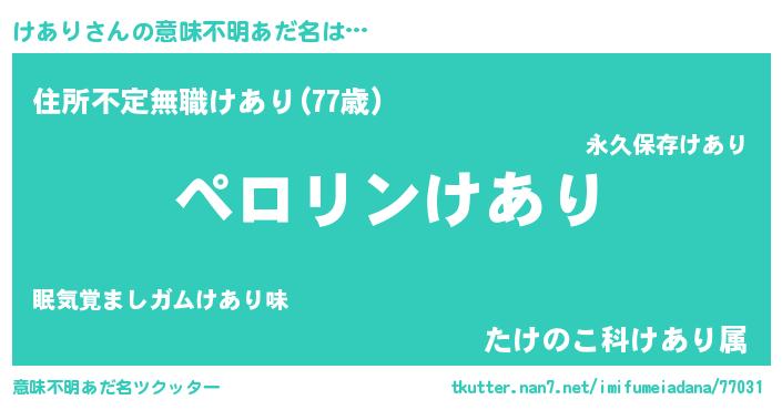| 男性向けラノベタイトル風あだ名 | 『けありの憂鬱』『魔弾の王とけあり』 |