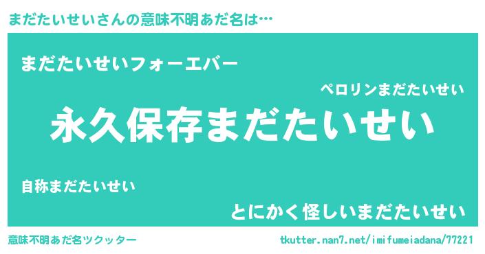 | 胡散臭い通販商品みたいなあだ名 | 『来世でも幸せになれる健康食品…その名も「まだたいせい」』 |