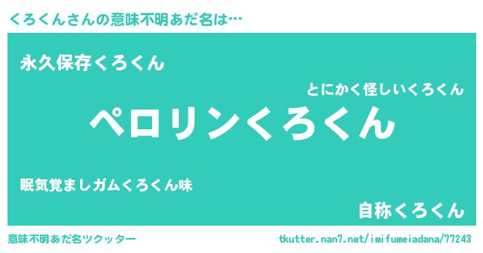 | 2回繰り返すあだ名 | 『くろくろ』『くるくる』『もろもろ』 |