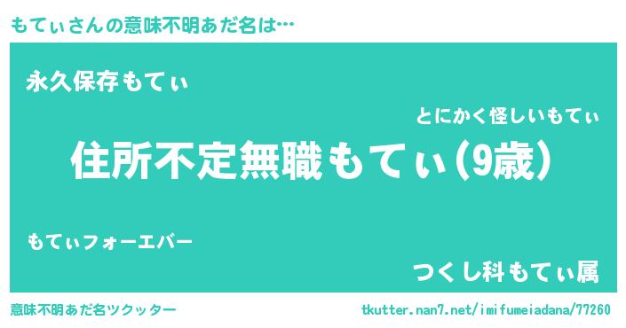 | ポケモン風あだ名 | 『モーテイ』『ゼニモテ』『ヒモティ』 |
