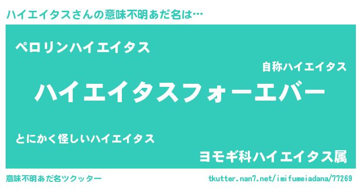 | 恥ずかしいあだ名 | 『ハイっちょ』『プリティーハイエイタス』 |