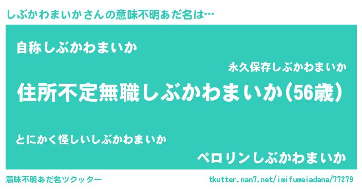 | 料理風あだ名 | 『しぶかわまいかのカルパッチョ風』 |