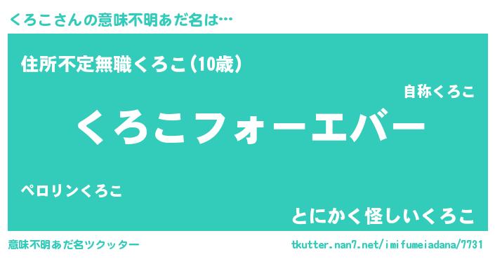 | 女子向けラノベタイトル風あだ名 | 『くろこ伯爵の花嫁』『くろこ様がみてる』 |