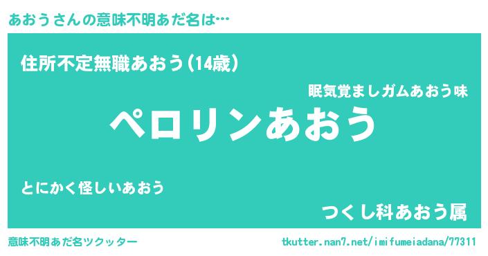 | 男性向けラノベタイトル風あだ名 | 『あおうの憂鬱』『魔弾の王とあおう』 |
