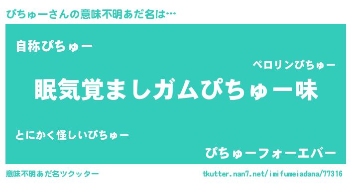 | 女子向けラノベタイトル風あだ名 | 『ぴちゅー恋絵巻』『ぴちゅーの婚約者』 |