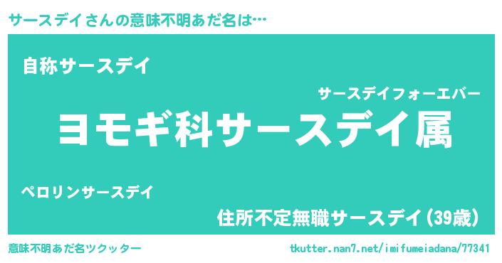 | 男性向けラノベタイトル風あだ名 | 『うちのサースデイが世界を掌握している!』 |