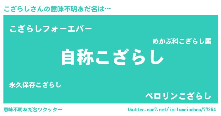 | ファンタジー風あだ名 | 『ゼコザトゥ』『エターナルコザラシー』 |