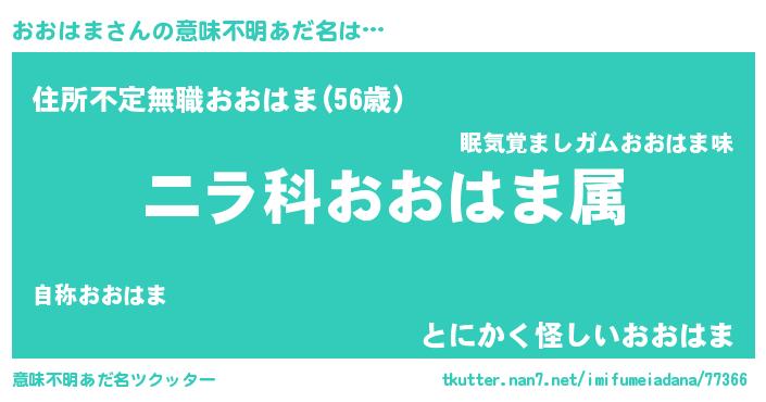 | 男性向けラノベタイトル風あだ名 | 『おおはまに滅ぼされるだけの簡単なお仕事です』 |